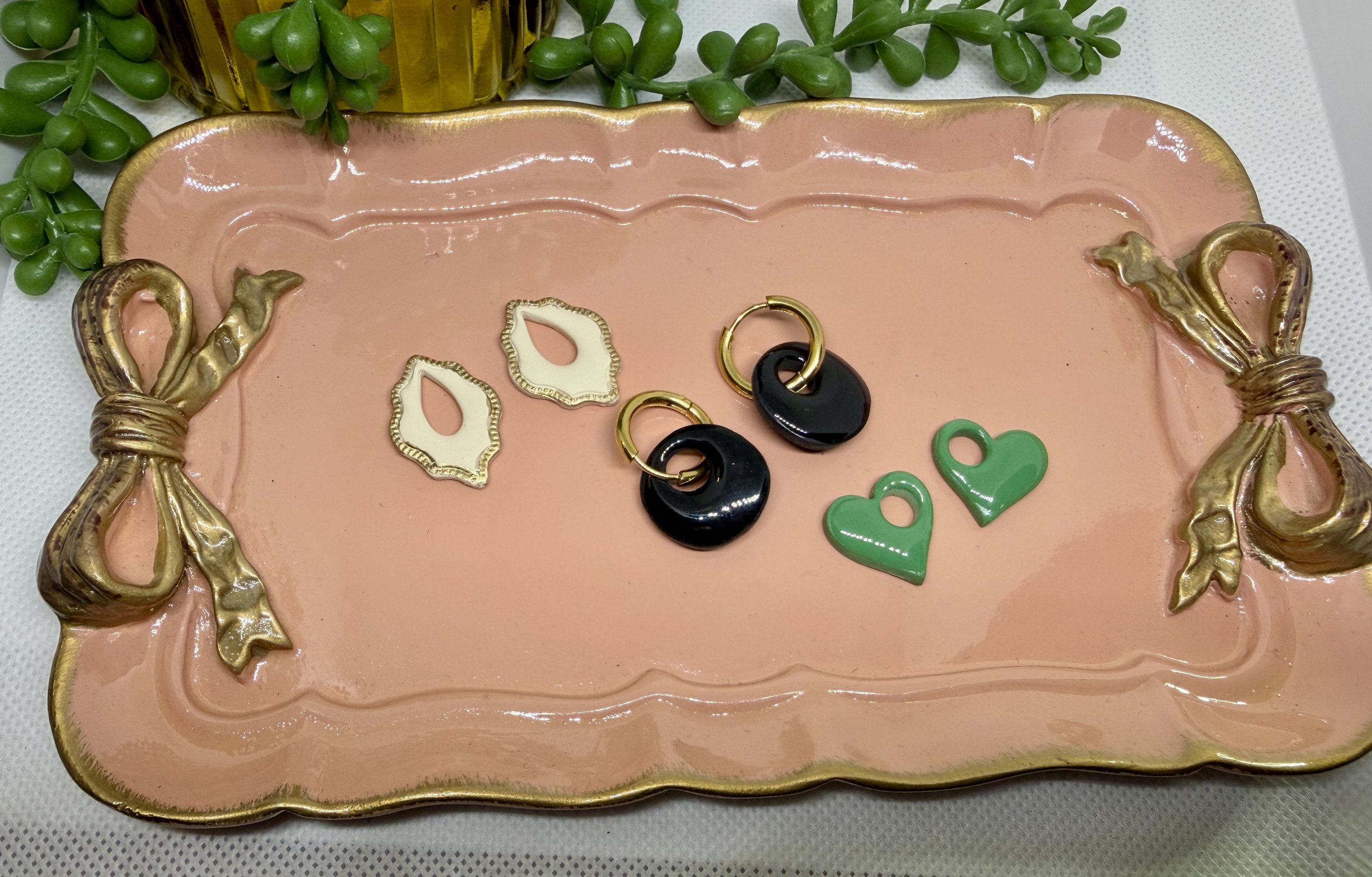 No two pieces will be exactly the same with handcrafted clay. These pieces add personality to ones own style. Whether you are celebrating special moments like, engagement photos, wedding, bridesmaid gifts, mother’s day, birthdays, and holidays, why not celebrate with unique designs.